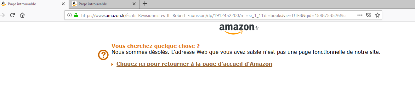 Je remercie Amazon d’avoir réagi si rapidement à ma demande. C’est, je crois, une petite victoire pour tous ceux qui luttent contre la diffusion du négationnisme et de la haine.