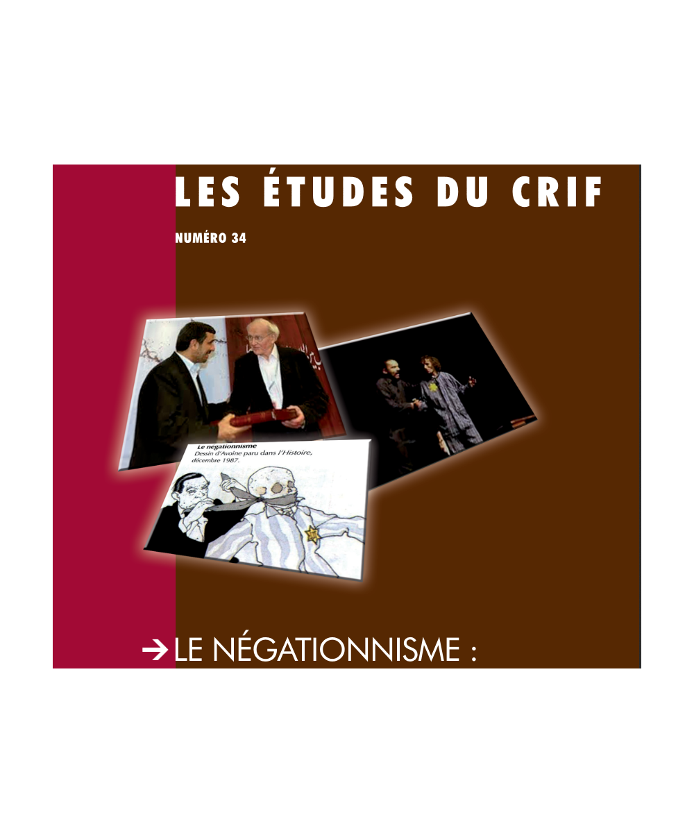 Dans ce numéro des Etudes du CRIF, l’historienne Valérie Igounet, éminente spécialiste de l’extrême-droite et du négationnisme, retrace avec minutie la genèse d’une idéologie particulièrement perverse et abjecte et de ses nombreuses variations dans le temps et dans l’espace. Elle brosse aussi le portrait de quelques provocateurs, illuminés et haineux, en quête de respectabilité et de publicité.