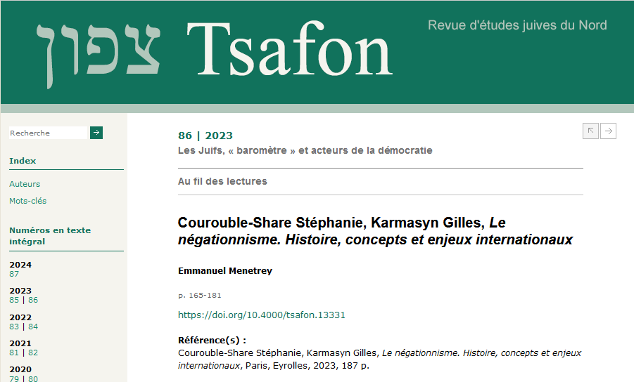 Note de lecture – Le négationnisme, Histoire, concepts et enjeux internationaux